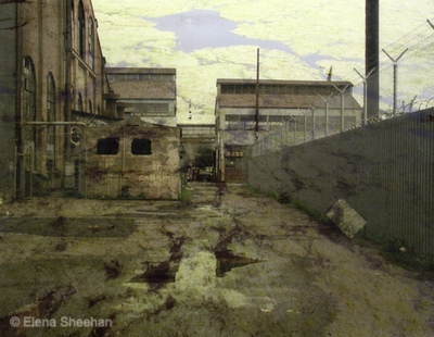 Shadows of the Past Image #22 In 2005, a friend directed me to Pier 70, which was being dismantled. He knew I would be interested in the area, even though it was not the kind of subject matter that usually appealed to me. I photographed that area for several years, and then I presented my work to the Port Commission. They put me on their mailing list and invited me to all the guided excursions to the fenced-off areas of Port 70. I had a box full of pictures of that area but never got around to trying to show the work, since it was not my usual "personal and intimate" subject matter. Recently I pulled out the box of Pier 70 pictures and decided to put them to use in some new way. I printed color transparencies of some of my nature images and layered them over the original Pier 70 pictures. I was amazed at how the layering transformed the original images. The added bit of nature (water, clouds, sky, grasses) gave the static pictures of decay a new life. I felt the pictures were in flux and changing before my eyes. We all hear a lot about climate change and how it is affecting everything and everyone. I had just finished reading The Sixth Extinction by Elizabeth Kolbert and felt my pictures were both shadows of the past and reflections of the present. Images are sequenced and printed into a book, Shadows of the Past. - Elena Sheehan
