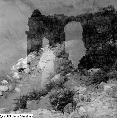 Antiquities Transformed Series Image #9 Since 1983 I have been interested in how images work together. In my book, Journey Through Seven Circles, I presented 35 images in seven metaphoric sequences. Since then I have been working with the idea of layering one image over another One image is superimposed directly onto the next in the camera, intentionally yet intuitively. This results in the destruction of a traditional form and the production of a new fluid reality. The subject is projected into a space of its own. Time past and time present are blended into organic movement that produces a continual inward and outward flow. All is in constant motion. Change is the only given. These images are from a body of work on ancient ruins found in Greece and Turkey. All but a few are multiple exposure. They are about spirit. By showing the subject in the context of its' own metamorphoses the photographs address the mystery, poetry and fantastic presence of the sacred in the world. - Elena Sheehan