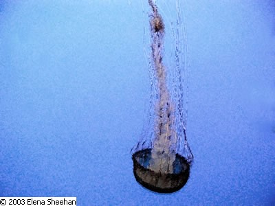 Fish Image #20 When I moved back to San Francisco in 1999, I gave up my darkroom. For many years, I had been feeling uneasy about throwing chemicals into our waters. Since I felt this way, the loss of the darkroom became less poignant. Change is always good if one can grow from it. I took up the digital camera and the digital darkroom and began working with Photoshop™. I was amazed that I really enjoyed the process. One can make images in many ways. I was still photographing subject matter that evoked a response from me. Fish are elusive as they constantly move. They are beautiful in color and context, but since they are in constant motion, it is difficult to capture their absolute likeness. Actually, I was not interested in capturing their absolute likeness. I did not photograph with flash. Instead, I went with the flow of their motion. I was happy to record the shapes and forms that they produced as they swam across my field of view. These were then transformed as they were captured by the slow shutter speed of the camera. Once again, my subject matter reflected my ongoing interest in the fleeting and transient nature of reality. - Elena Sheehan