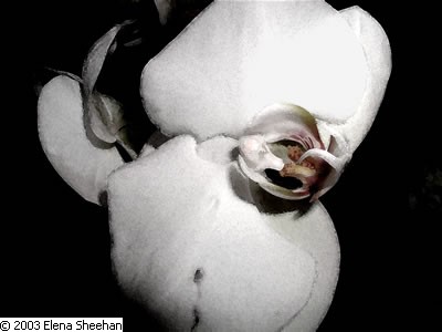Color Flowers Image #2 I had taught color photography for many years yet my own work remained black and white. Since I turned to digital photography in 1999 color has become a great pleasure. These pictures are about experiencing the pure joy of color and form of the subtle shapes of flowers. The images are straight images, shot with flash, and slightly enhanced through Photoshop™. - Elena Sheehan