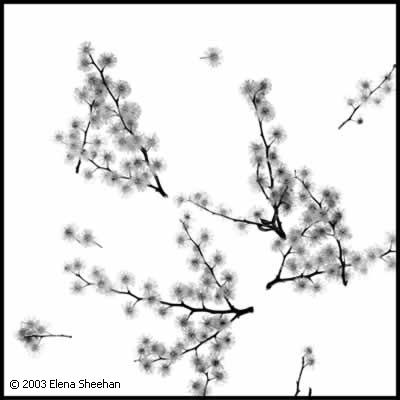 Black & White Flowers Image #11 This body of work evolved after the summer that I worked as the photographer on an archeological excavation in Greece. There, I photographed the objects that were unearthed after being buried for several millennium. I already had a personal portfolio of multiple exposure work dealing with Greek and Roman antiquities and this straight documentation of objects left me feeling lifeless. When I returned to California and my new home and to my garden, I was enchanted by the beauty of my environment. Initially I started to photograph the flowers because of their inherent grace. But as I progressed into the project, I felt that showing the flowers to be handsome was not enough. Flowers are fragile and as one handles them, they come apart. As they came apart, the parts became more than a whole. I decided to concentrate on this aspect of my subject. The placement of the flower parts creates a certain tension which then lends itself to the impression of movement. This impression of motion transforms the subject into a new an fluid reality. The flowers take on different personalities. Some are still and quiet and appear content, some are active and jumpy, others seem to sway to the tunes of the tango. The energy between the separate entities perpetuates an illusion of change. This evanescent quality of reality has always been the main subject of all my work. [Printed in limited and numbered editions. 30 images total. ] - Elena Sheehan