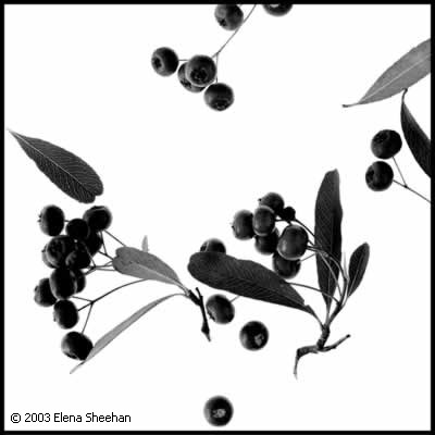 Black & White Flowers Image #2 This body of work evolved after the summer that I worked as the photographer on an archeological excavation in Greece. There, I photographed the objects that were unearthed after being buried for several millennium. I already had a personal portfolio of multiple exposure work dealing with Greek and Roman antiquities and this straight documentation of objects left me feeling lifeless. When I returned to California and my new home and to my garden, I was enchanted by the beauty of my environment. Initially I started to photograph the flowers because of their inherent grace. But as I progressed into the project, I felt that showing the flowers to be handsome was not enough. Flowers are fragile and as one handles them, they come apart. As they came apart, the parts became more than a whole. I decided to concentrate on this aspect of my subject. The placement of the flower parts creates a certain tension which then lends itself to the impression of movement. This impression of motion transforms the subject into a new an fluid reality. The flowers take on different personalities. Some are still and quiet and appear content, some are active and jumpy, others seem to sway to the tunes of the tango. The energy between the separate entities perpetuates an illusion of change. This evanescent quality of reality has always been the main subject of all my work. - Elena Sheehan