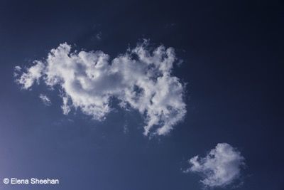 Clouds (Series) Image #1 These images of Clouds extends further my interest in the ephemeral aspect of all matter. Rock formations change slowly over time. Clouds, as water, take on forms that can change instantly. The beauty of the white clouds against the blue sky in Greece caught my imagination and fancy. Fast shutter speed and a small aperture opening are imperative in order to make a sharp image of a cloud floating miles away in the sky. With this close attention one learns to appreciate all aspects of the magic that surrounds us. These images are one of a kind. Printed on Archival Photo Paper with Archival Pigment Inks on paper size 22" x 28". - Elena Sheehan