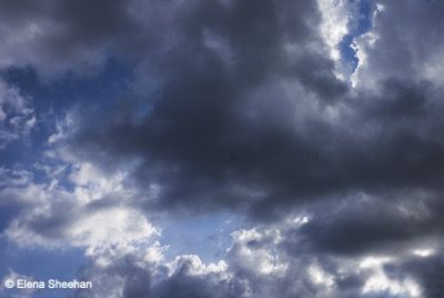 Clouds (Series) Image #8 These images of Clouds extends further my interest in the ephemeral aspect of all matter. Rock formations change slowly over time. Clouds, as water, take on forms that can change instantly. The beauty of the white clouds against the blue sky in Greece caught my imagination and fancy. Fast shutter speed and a small aperture opening are imperative in order to make a sharp image of a cloud floating miles away in the sky. With this close attention one learns to appreciate all aspects of the magic that surrounds us. These images are one of a kind. Printed on Archival Photo Paper with Archival Pigment Inks on paper size 22" x 28". - Elena Sheehan