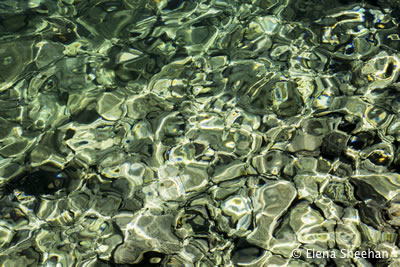 Ephemera Image #7 I am drawn to the fluctuating forms of water. The quality of light and reflections can make water appear dark, deep, melancholy, somber, stagnate or even dead. Water can also be luminous, sweet, playful, vibrant, effervescent, scintillating, turbulent, transparent and still. These forms mirror all aspects of life with its ever-changing nature. Archival Pigment Prints 18" x 24" Editions of two. - Elena Sheehan