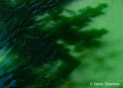 Ephemera Image #12 I am drawn to the fluctuating forms of water. The quality of light and reflections can make water appear dark, deep, melancholy, somber, stagnate or even dead. Water can also be luminous, sweet, playful, vibrant, effervescent, scintillating, turbulent, transparent and still. These forms mirror all aspects of life with its ever-changing nature. Archival Pigment Prints 18" x 24" Editions of two. - Elena Sheehan