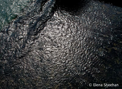 Ephemera Image #13 I am drawn to the fluctuating forms of water. The quality of light and reflections can make water appear dark, deep, melancholy, somber, stagnate or even dead. Water can also be luminous, sweet, playful, vibrant, effervescent, scintillating, turbulent, transparent and still. These forms mirror all aspects of life with its ever-changing nature. Archival Pigment Prints 18" x 24" Editions of two. - Elena Sheehan