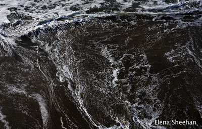 Ephemera Image #14 I am drawn to the fluctuating forms of water. The quality of light and reflections can make water appear dark, deep, melancholy, somber, stagnate or even dead. Water can also be luminous, sweet, playful, vibrant, effervescent, scintillating, turbulent, transparent and still. These forms mirror all aspects of life with its ever-changing nature. Archival Pigment Prints 18" x 24" Editions of two. - Elena Sheehan