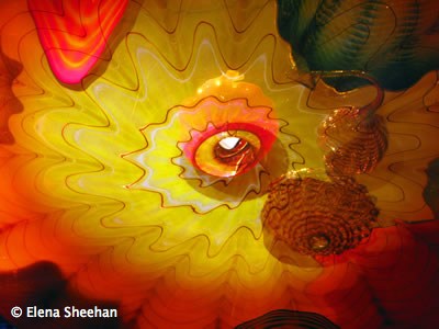 Glass/Light Image #7 I looked at Dale Chihuly's work and saw the universe in it. I translated it into my vision of the sea, fish, pods, stars and the layering and celebration of life. These 10 images are printed with permanent pigment inks on canvas and stretched to 18" x 24". They are One of a Kind images. No Editions. - Elena Sheehan