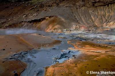 Iceland Image #1 Iceland is one of the youngest evolving landmasses in the world. As two titanic plates are being pulled apart lava rises from below the earth's surface to fill the gap. Hot thermal pools release steam from lower depths. But much of the island is still covered by glaciers that were formed in the Ice Age. This combination of volcanic activity, the release of heat from the bowels of the earth and the melting of ice caps results in a constantly evolving and changing environment. I was taken, not only by the the beauty of the land, but also by the overwhelming sense of stillness and quiet that in many places made me feel like I was in a fantasy land of magic and mystery. The portfolio prints are archival pigment prints. Editions limited to 2 prints each. - Elena Sheehan