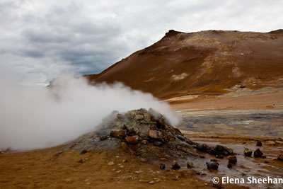 Iceland Image #2 Iceland is one of the youngest evolving landmasses in the world. As two titanic plates are being pulled apart lava rises from below the earth's surface to fill the gap. Hot thermal pools release steam from lower depths. But much of the island is still covered by glaciers that were formed in the Ice Age. This combination of volcanic activity, the release of heat from the bowels of the earth and the melting of ice caps results in a constantly evolving and changing environment. I was taken, not only by the the beauty of the land, but also by the overwhelming sense of stillness and quiet that in many places made me feel like I was in a fantasy land of magic and mystery. The portfolio prints are archival pigment prints. Editions limited to 2 prints each. - Elena Sheehan