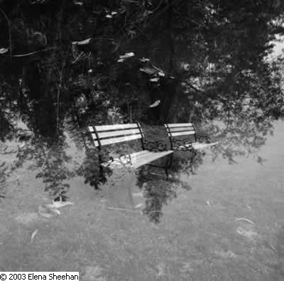 Multiple Exposure Series "Sebastapol Summer " In photography time is used to present a reality. But this reality is not presented as the mind ordinarily perceives it. Time seems to stop so that the mind can examine more closely something that it thinks it has seen. But actually, since time is frozen into a still and unique image, a new reality is created. This blending and layering of time and space is what interests me about photography. For the past several years I have been more and more interested in how images work together. I explored this interest in my book, Journey Through Seven Circles, by arranging the images into meaningful time sequences. I have also worked with photographic collage. More recently, I have put images together by layering one on top of the other directly onto a single negative. This use of multiple exposure to create a unique image is not a new process. In the 1920's Man Ray, Moholy-Nagy, Serge Eisenstein and many of the Cubists painters created new and poetic images by incorporating ideas of layering and the use of montage. I photograph in spaces that somehow evoke a response from me. In these spaces I feel free to transform the visual reality of the everyday world into images that evoke the dreamlike world of the unconscious. There is no single interpretation for these images. Every viewer will bring their own imagination and experience to play in viewing the work. [35 images total] - Elena Sheehan