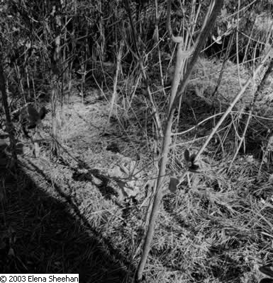 Nature Series Image #10 My relationship to nature is based on the images I acquired as a child while listening to the Russian fairy tales my parents read to me. In these tales the forest is an enchanted place filled with witches, fairies and other spirits. It is this imaginary landscape I am trying to find and portray from the images in the natural world into which the supernatural seems on the verge of intruding. At the end of the project I sequenced and titled the sections of images and put together a book. Journey Through Seven Circles describes the walk through the woods as a metaphor for the journey of life. [35 images total] - Elena Sheehan