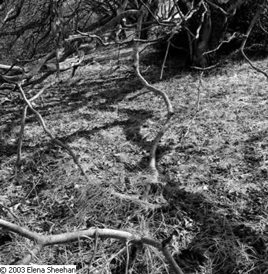 Nature Series Image #2 My relationship to nature is based on the images I acquired as a child while listening to the Russian fairy tales my parents read to me. In these tales the forest is an enchanted place filled with witches, fairies and other spirits. It is this imaginary landscape I am trying to find and portray from the images in the natural world into which the supernatural seems on the verge of intruding. At the end of the project I sequenced and titled the sections of images and put together a book. Journey Through Seven Circles describes the walk through the woods as a metaphor for the journey of life. [35 images total] - Elena Sheehan