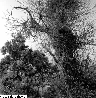 Nature Series Image #7 My relationship to nature is based on the images I acquired as a child while listening to the Russian fairy tales my parents read to me. In these tales the forest is an enchanted place filled with witches, fairies and other spirits. It is this imaginary landscape I am trying to find and portray from the images in the natural world into which the supernatural seems on the verge of intruding. At the end of the project I sequenced and titled the sections of images and put together a book. Journey Through Seven Circles describes the walk through the woods as a metaphor for the journey of life. [35 images total] - Elena Sheehan
