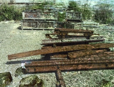 Shadows of the Past Image #13 In 2005, a friend directed me to Pier 70, which was being dismantled. He knew I would be interested in the area, even though it was not the kind of subject matter that usually appealed to me. I photographed that area for several years, and then I presented my work to the Port Commission. They put me on their mailing list and invited me to all the guided excursions to the fenced-off areas of Port 70. I had a box full of pictures of that area but never got around to trying to show the work, since it was not my usual "personal and intimate" subject matter. Recently I pulled out the box of Pier 70 pictures and decided to put them to use in some new way. I printed color transparencies of some of my nature images and layered them over the original Pier 70 pictures. I was amazed at how the layering transformed the original images. The added bit of nature (water, clouds, sky, grasses) gave the static pictures of decay a new life. I felt the pictures were in flux and changing before my eyes. We all hear a lot about climate change and how it is affecting everything and everyone. I had just finished reading The Sixth Extinction by Elizabeth Kolbert and felt my pictures were both shadows of the past and reflections of the present. Images are sequenced and printed into a book, Shadows of the Past. - Elena Sheehan