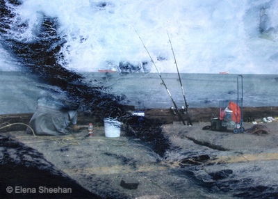 Shadows of the Past Image #3 In 2005, a friend directed me to Pier 70, which was being dismantled. He knew I would be interested in the area, even though it was not the kind of subject matter that usually appealed to me. I photographed that area for several years, and then I presented my work to the Port Commission. They put me on their mailing list and invited me to all the guided excursions to the fenced-off areas of Port 70. I had a box full of pictures of that area but never got around to trying to show the work, since it was not my usual "personal and intimate" subject matter. Recently I pulled out the box of Pier 70 pictures and decided to put them to use in some new way. I printed color transparencies of some of my nature images and layered them over the original Pier 70 pictures. I was amazed at how the layering transformed the original images. The added bit of nature (water, clouds, sky, grasses) gave the static pictures of decay a new life. I felt the pictures were in flux and changing before my eyes. We all hear a lot about climate change and how it is affecting everything and everyone. I had just finished reading The Sixth Extinction by Elizabeth Kolbert and felt my pictures were both shadows of the past and reflections of the present. Images are sequenced and printed into a book, Shadows of the Past. - Elena Sheehan