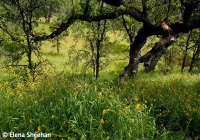 Trees Series Image #15 These pictures of trees are not about specific trees in a specific place. Rather my interests, as in all my work, is about the spirit of the subject as it is affected by the elements. The project began slowly and without a specific intent. As I traveled and hiked, my eyes opened to the subtle nuances of the beautiful shapes of nature. I was drawn to the mystery that is created when motion caused by the wind blowing the trees creates unpredictable forms. That uncertainty along with the magic that light can affect became important to me. Once again the evanescent quality of reality became my main subject. - Elena Sheehan