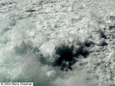 Water Image #5 My mother died at the end of 2003. It had been a hard several years for her and for me. The time was both emotionally and physically exhausting for both of us. Due to this emotional drain I was not able to work on a sustained project so just occasionally went out to photograph. I was drawn to the outdoors, to the natural environment and most of all to places where water had a healing effect on me. In 2004 I went back to the serious and enjoyable work of looking specifically at something till it revealed it’s self to me. I was drawn again to water because of its natural beauty, calming aspects but even more so because of its constantly changing nature. Water is a transitory element. It is always in motion. It has an endless flow, depth, movement and brake up of form. It is formless and thus is the ultimate metaphor for the constant change that is life. This is an ongoing project. - Elena Sheehan