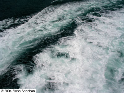 Water Image #1 My mother died at the end of 2003. It had been a hard several years for her and for me. The time was both emotionally and physically exhausting for both of us. Due to this emotional drain I was not able to work on a sustained project so just occasionally went out to photograph. I was drawn to the outdoors, to the natural environment and most of all to places where water had a healing effect on me. In 2004 I went back to the serious and enjoyable work of looking specifically at something till it revealed it’s self to me. I was drawn again to water because of its natural beauty, calming aspects but even more so because of its constantly changing nature. Water is a transitory element. It is always in motion. It has an endless flow, depth, movement and brake up of form. It is formless and thus is the ultimate metaphor for the constant change that is life. This is an ongoing project. - Elena Sheehan