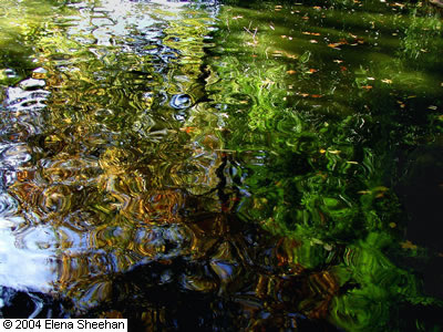 Water Image #7 My mother died at the end of 2003. It had been a hard several years for her and for me. The time was both emotionally and physically exhausting for both of us. Due to this emotional drain I was not able to work on a sustained project so just occasionally went out to photograph. I was drawn to the outdoors, to the natural environment and most of all to places where water had a healing effect on me. In 2004 I went back to the serious and enjoyable work of looking specifically at something till it revealed it’s self to me. I was drawn again to water because of its natural beauty, calming aspects but even more so because of its constantly changing nature. Water is a transitory element. It is always in motion. It has an endless flow, depth, movement and brake up of form. It is formless and thus is the ultimate metaphor for the constant change that is life. This is an ongoing project. - Elena Sheehan