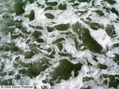 Water Image #6 My mother died at the end of 2003. It had been a hard several years for her and for me. The time was both emotionally and physically exhausting for both of us. Due to this emotional drain I was not able to work on a sustained project so just occasionally went out to photograph. I was drawn to the outdoors, to the natural environment and most of all to places where water had a healing effect on me. In 2004 I went back to the serious and enjoyable work of looking specifically at something till it revealed it’s self to me. I was drawn again to water because of its natural beauty, calming aspects but even more so because of its constantly changing nature. Water is a transitory element. It is always in motion. It has an endless flow, depth, movement and brake up of form. It is formless and thus is the ultimate metaphor for the constant change that is life. This is an ongoing project. - Elena Sheehan