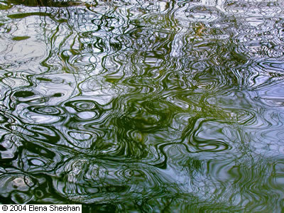 Water Image #12 My mother died at the end of 2003. It had been a hard several years for her and for me. The time was both emotionally and physically exhausting for both of us. Due to this emotional drain I was not able to work on a sustained project so just occasionally went out to photograph. I was drawn to the outdoors, to the natural environment and most of all to places where water had a healing effect on me. In 2004 I went back to the serious and enjoyable work of looking specifically at something till it revealed it’s self to me. I was drawn again to water because of its natural beauty, calming aspects but even more so because of its constantly changing nature. Water is a transitory element. It is always in motion. It has an endless flow, depth, movement and brake up of form. It is formless and thus is the ultimate metaphor for the constant change that is life. This is an ongoing project. - Elena Sheehan