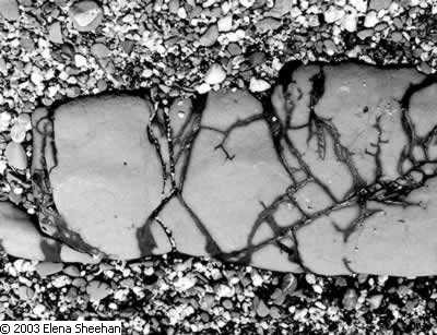 Water's Edge Series Image #7 The beach has always been a special place for me. Since childhood I have loved to explore the sand and water which are in a relationship of constant change. Even though this work is a departure from the multiple-exposure images I have been making for the past ten years, the concept of time and motion interweaving to create a mysterious, otherworldly reality is still very much my concern. In this work rather than interlace two images together to create the breakup of space, I have exaggerated the granular structure of the silver print to convey that illusion of the lack of stability. Close scrutiny of the images will illustrate the evanescent quality of reality that interests me.[The portfolio consists of 18 limited edition images. Images size is 17"x17", overmatted to 23"x26".] - Elena Sheehan