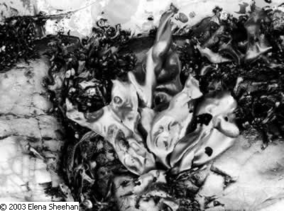 Water's Edge Series Image #9 The beach has always been a special place for me. Since childhood I have loved to explore the sand and water which are in a relationship of constant change. Even though this work is a departure from the multiple-exposure images I have been making for the past ten years, the concept of time and motion interweaving to create a mysterious, otherworldly reality is still very much my concern. In this work rather than interlace two images together to create the breakup of space, I have exaggerated the granular structure of the silver print to convey that illusion of the lack of stability. Close scrutiny of the images will illustrate the evanescent quality of reality that interests me.[The portfolio consists of 18 limited edition images. Images size is 17"x17", overmatted to 23"x26".] - Elena Sheehan